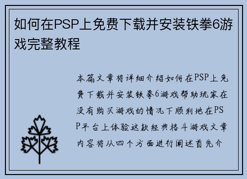 如何在PSP上免费下载并安装铁拳6游戏完整教程